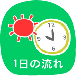 午前7時~午後7時までお預かりします。登園時間は、午前9時30分までお願いします。お休みする時、遅れる時は必ずご連絡ください。 - 登園・降園の送迎について